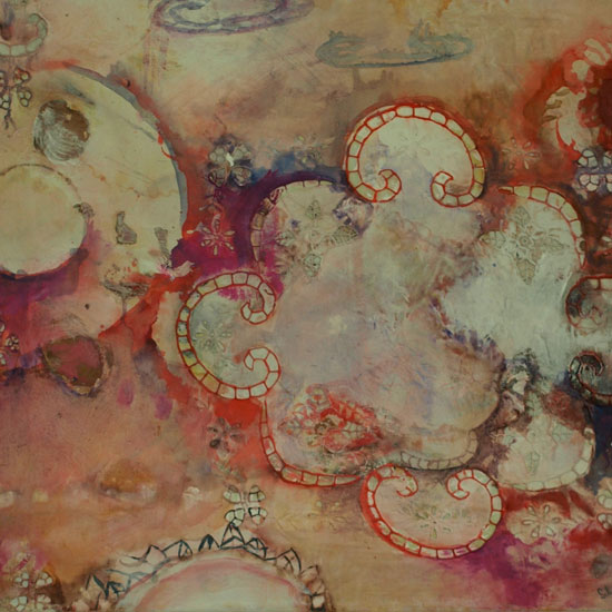 Acryl auf bestickte Baumwolle, 50 x 50 cm